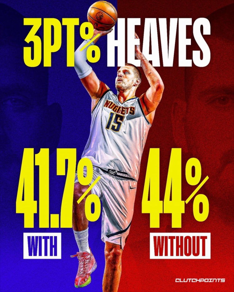 這類(lèi)投籃中,約基奇上賽季以22次出手領(lǐng)跑全聯(lián)盟。據美媒Clutchpoints統計,若按照新算法,約基奇上賽季的三分命中率將從41.7%升至44.0%,整體投籃命中率從57.6%升至58.4%。