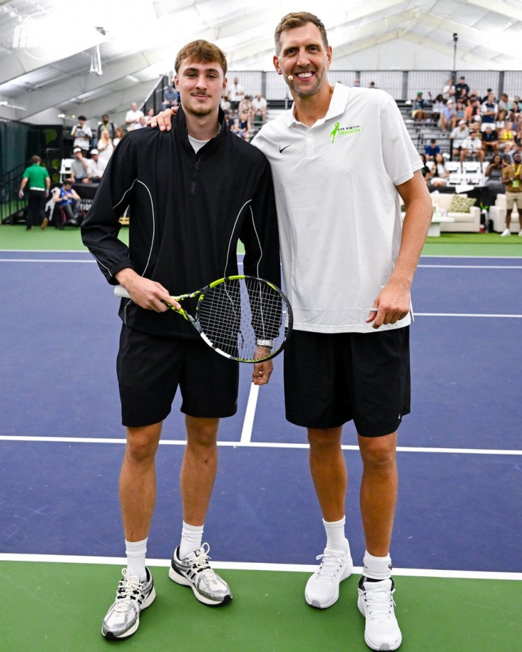 聯(lián)動(dòng)!獨行俠狀元弗拉格亮相名人網(wǎng)球賽 并且與諾維茨基親密互動(dòng)