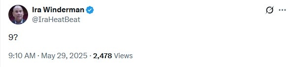 熱火隊記Ira Winderman在線(xiàn)吃瓜:“(只得到)9分?”