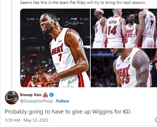 5月12日訊 近日熱火球迷們在社媒發(fā)文積極構思各種與KD有關(guān)的交易方案。
