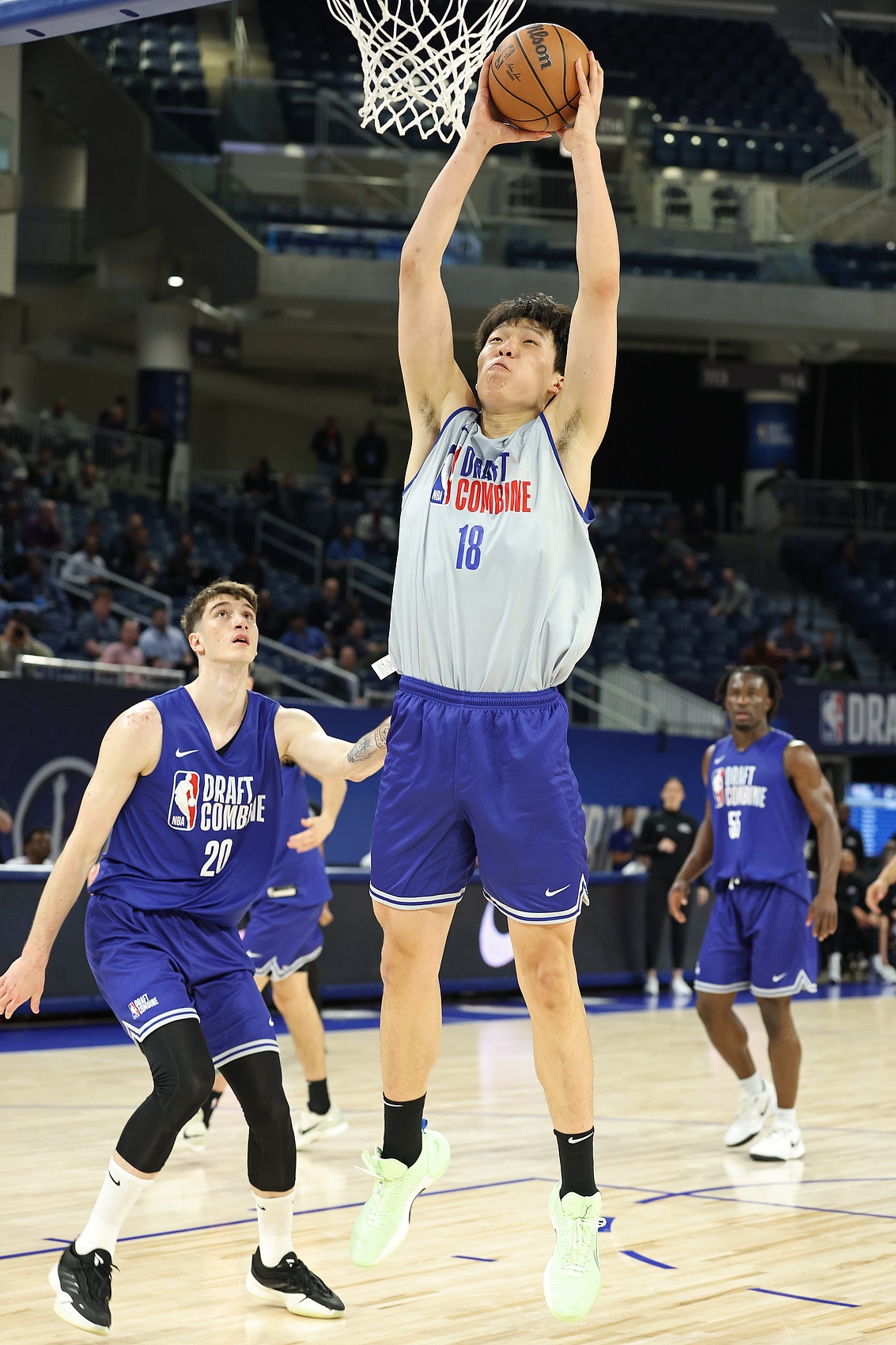 “楊對比賽的理解能力很棒,一個(gè)身高7尺2的大個(gè)子卻非常有技術(shù)水準,在籃下雙手都能完成很精細的終結動(dòng)作,腳步也很出色,還能拉出來(lái)投三分,能里能外。顯然他是一個(gè)受過(guò)高水平訓練的運動(dòng)員。他現在和一位即將進(jìn)入前10順位的新秀卡曼-馬盧阿奇(下圖,身高2.18/臂展2.31)一起訓練,楊與他相比絲毫不遜色。盡管對手防守效果更明顯,但楊進(jìn)攻時(shí)的手感、腳步和投籃機制這方面比對手更好,這些都給我們展現出了很多值得期待的東西?!?/p>