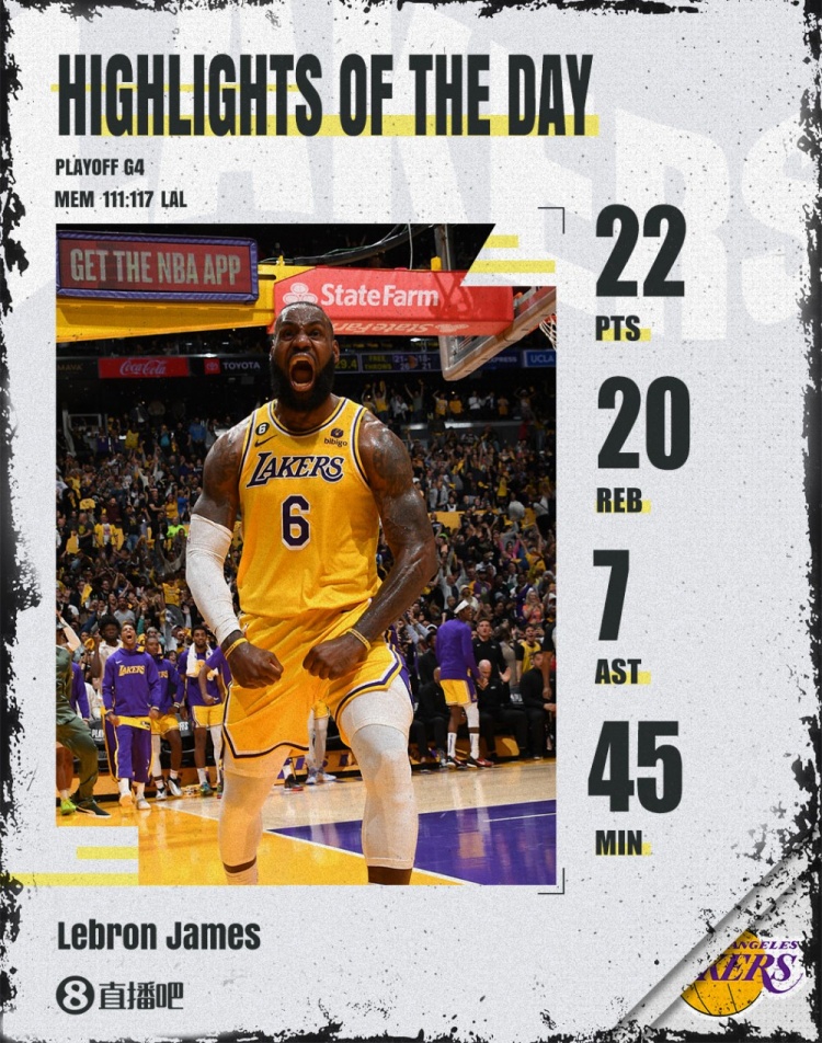 NBA季后賽首輪G4,湖人主場(chǎng)加時(shí)117-111逆轉灰熊,將大比分擴大為3-1。