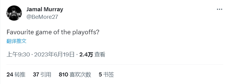 冠軍后衛??穆雷發(fā)推:大家最喜歡的季后賽比賽是?