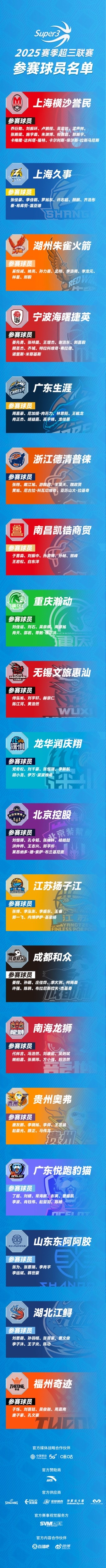 2025賽季超三聯(lián)賽將于6月13日拉開(kāi)戰幕,19支俱樂(lè )部的參賽球員名單如下: