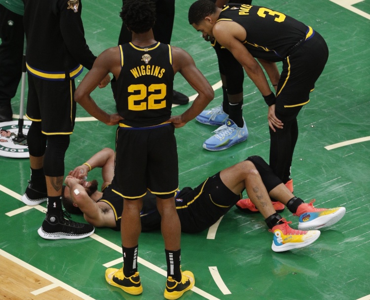 G3最后時(shí)刻,庫里被壓到后腳部位遭遇腳踝傷勢,G4最終選擇帶傷出戰!