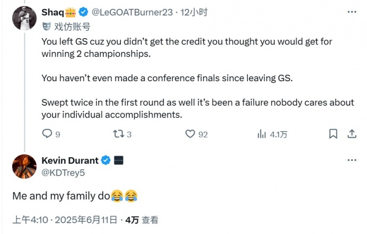 6月11日訊 近日,杜蘭特在社媒和網(wǎng)友互動(dòng)。