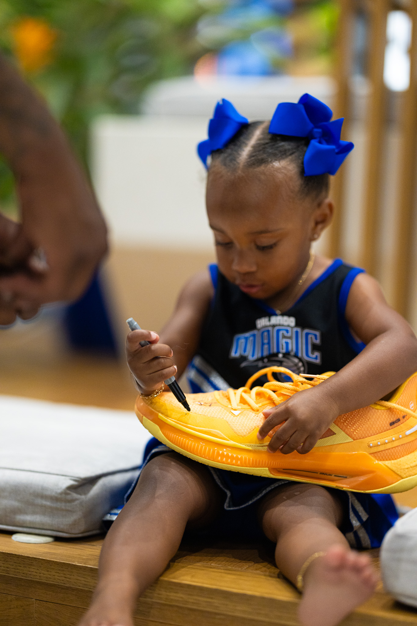 作為361?籃球品類(lèi)代言人的波普,在現場(chǎng)也拿出了自己珍藏的PE球鞋,送給了參加派對的小朋友們。