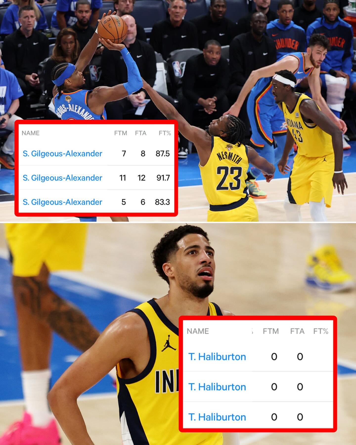 ??差距太大!總決賽至今三場(chǎng)SGA罰球26次 哈利伯頓一次都沒(méi)有