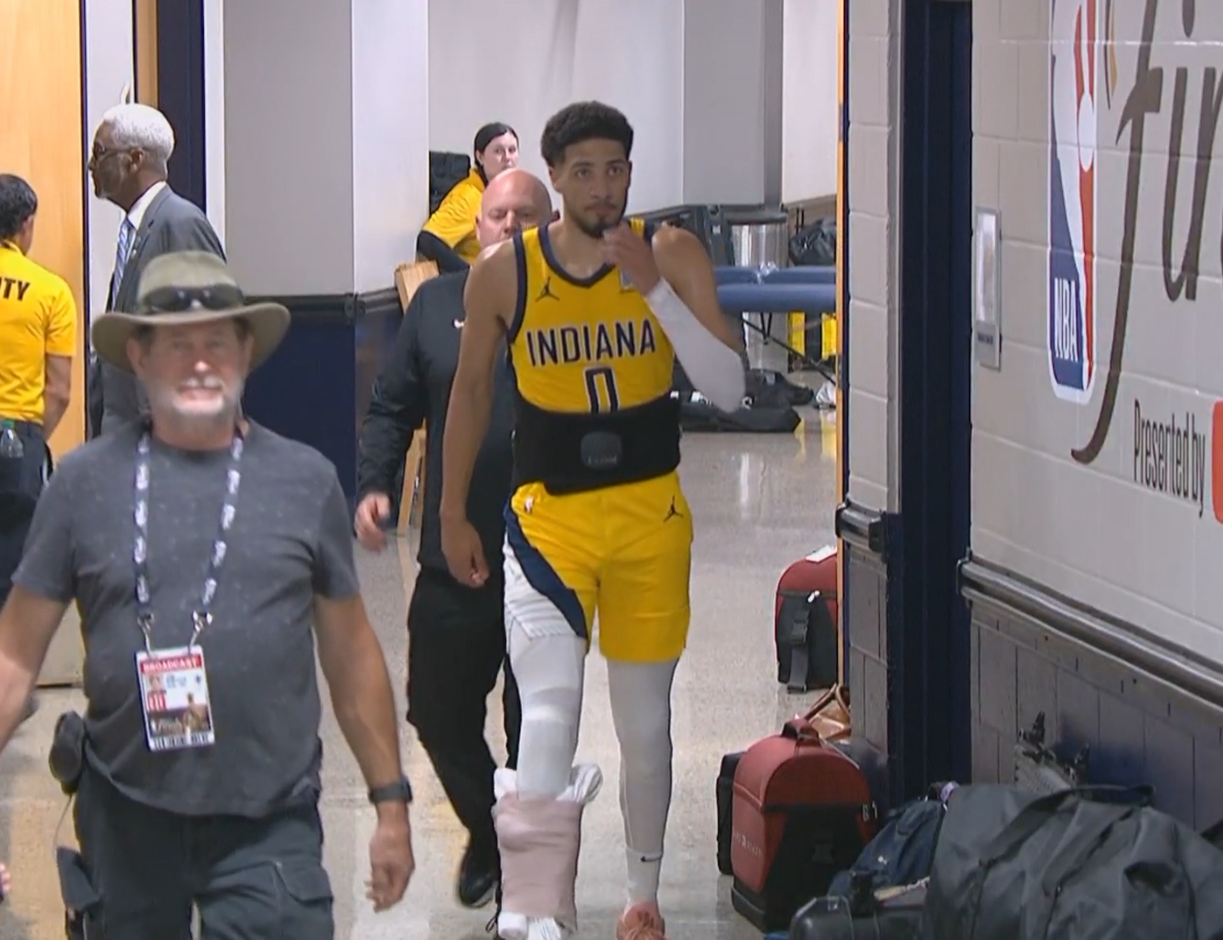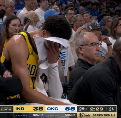 06月17日訊 總決天王山,哈利伯頓在上半場(chǎng)一度回到更衣室。