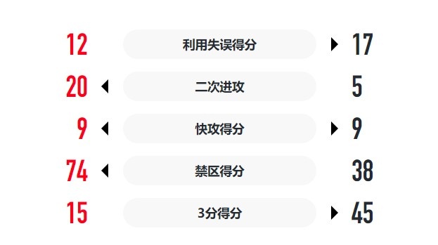 本場(chǎng)比賽,兩隊的進(jìn)攻選擇差異很大,中國女籃禁區得分74分,接近日本女籃(38分)的兩倍,中國女籃三分得分15分(19投5中),比日本女籃少30分(36投15中)。