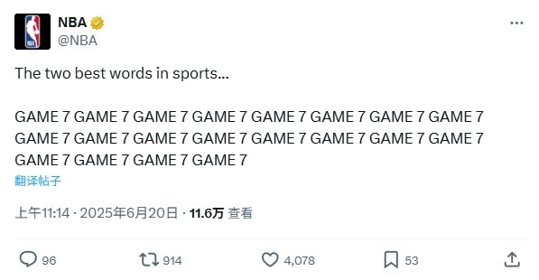 賽后,NBA官推發(fā)文寫(xiě)道:“體育界最棒的兩個(gè)字:搶七搶七搶七搶七搶七搶七搶七搶七搶七搶七搶七搶七...”