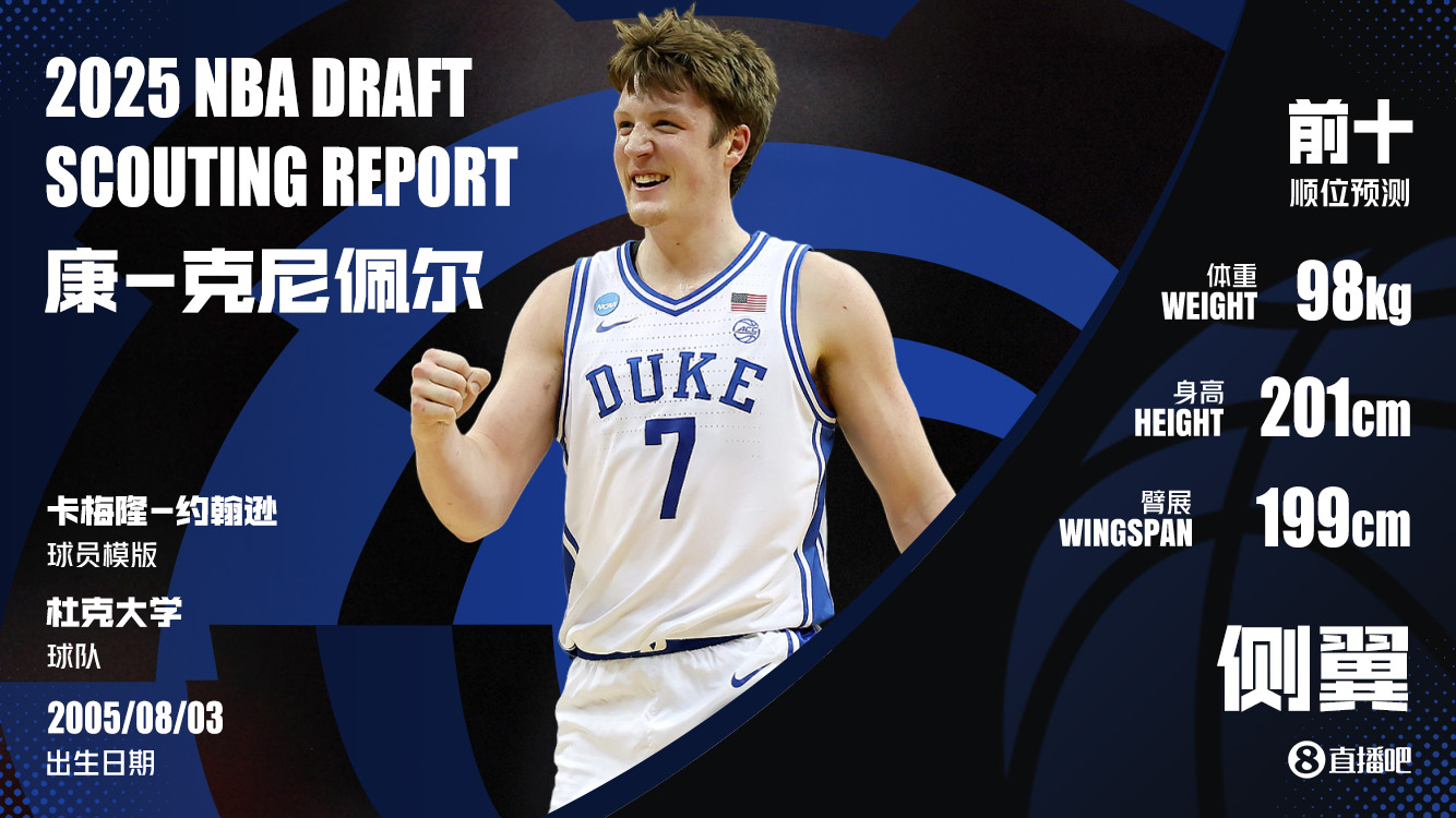 首輪第4順位,夏洛特黃蜂選擇了來(lái)自杜克大學(xué)的康-克尼佩爾(Kon Knueppel)