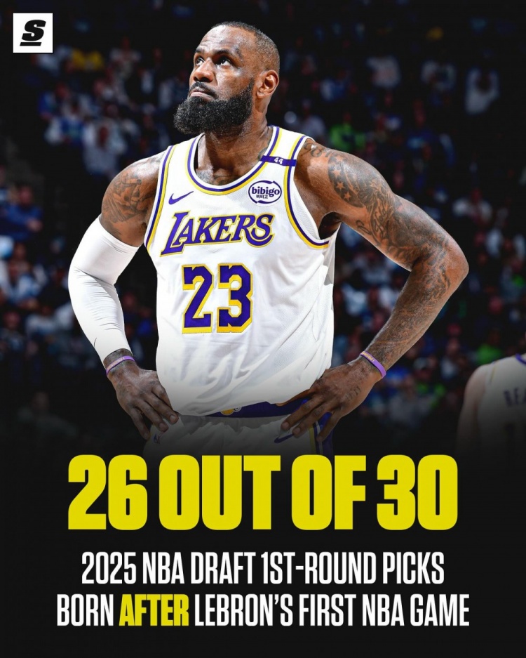 6月27日訊 作為2003年的選秀狀元,詹姆斯在當地時(shí)間2003年10月29日迎來(lái)了他的NBA首秀。而值得一提的是,今年首輪秀中有26人的出生時(shí)間晚于詹姆斯的NBA首秀日。