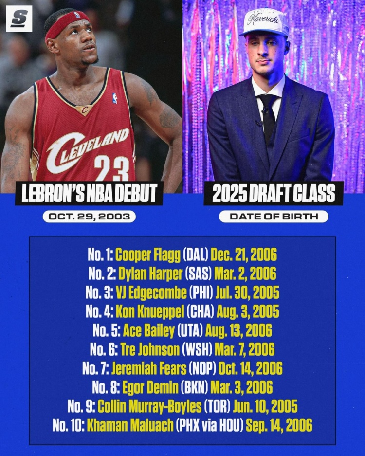 而早于詹姆斯NBA首秀日出生的四名球員分別是:第11順位的錫德里克-科沃德、第18順位的、第24位的尼克-克利福德還有第30位的揚尼克-科南-尼德豪澤。