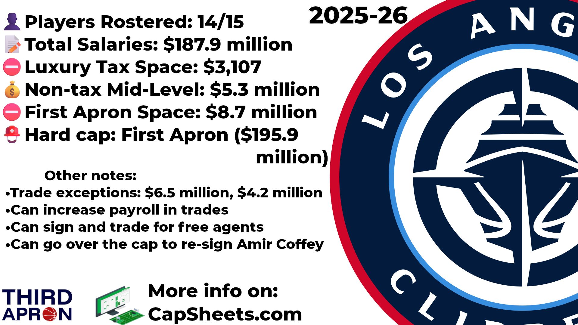 現在,快船低于他們觸發(fā)的第一土豪線(xiàn)800萬(wàn)美元。