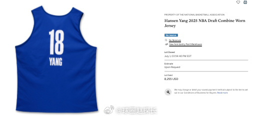 07月02日訊 資料顯示,楊瀚森聯(lián)合試訓時(shí)所穿的18號球衣以8225美元(人民幣約58934元)的價(jià)格成功出售。