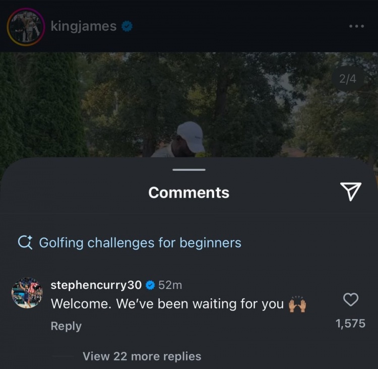 勇士后衛庫里評論道:“歡迎加入。我們一直在等你?? ”