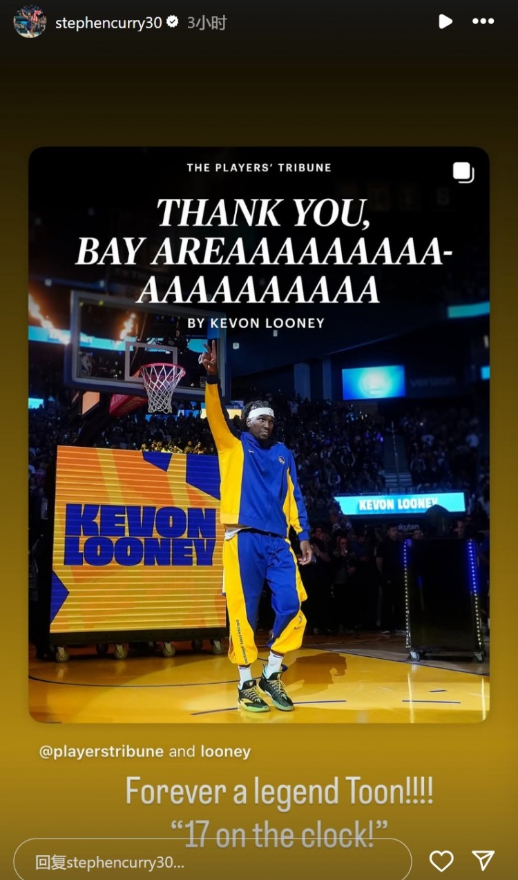 對此,勇士球星斯蒂芬-庫里評論道:“永遠都是一個(gè)傳奇,盧尼?。。?!”