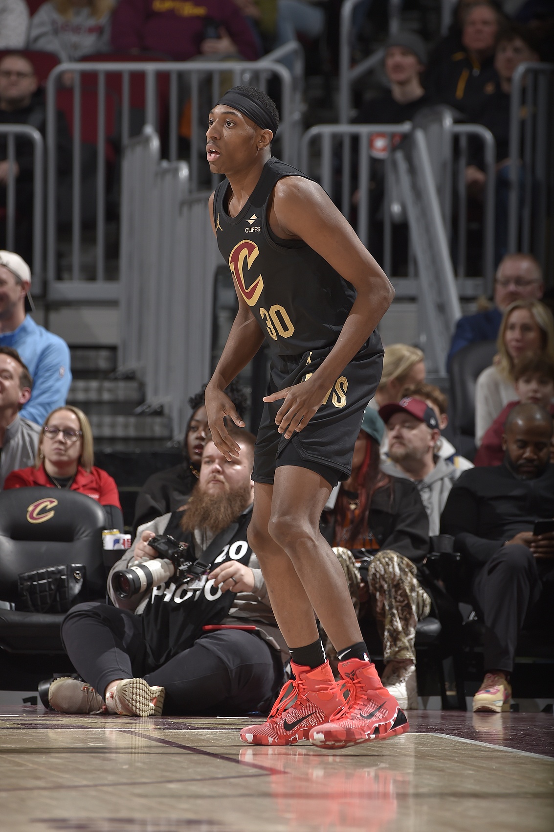 此役騎士前鋒湯姆林表現出色,攻防兩端高效全面,打了27分鐘12投9中,三分3中2、罰球3中2拿到全場(chǎng)最高22分13籃板外加4助攻2搶斷1蓋帽,正負值+7。
