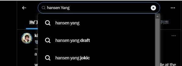 值得一提的是,在某知名社交網(wǎng)站上搜索hansen yang會(huì )顯示hansen yang jokic(楊瀚森約基奇)的下拉詞條。