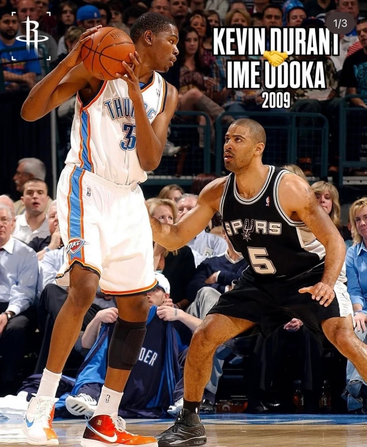 烏度卡回答說(shuō)道: “我從未真正防住過(guò)凱文-杜蘭特,我們先說(shuō)清楚這一點(diǎn)。如果他投丟了一球,那大概和某個(gè)1米96的家伙試圖干擾他沒(méi)什么關(guān)系?!?/p>