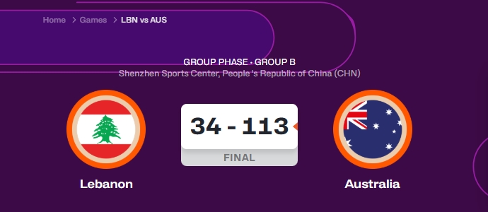 07月14日訊 2025年女籃亞洲杯小組賽,澳大利亞以113-34血洗黎巴嫩。