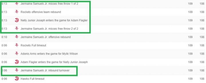 有趣的是,就在發(fā)球失誤前7秒鐘,薩繆爾斯兩罰不中