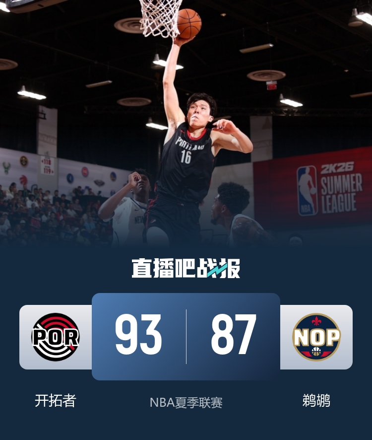 7月16日訊 NBA夏季聯(lián)賽繼續開(kāi)打,開(kāi)拓者迎戰鵜鶘,楊瀚森繼續首發(fā)出戰。