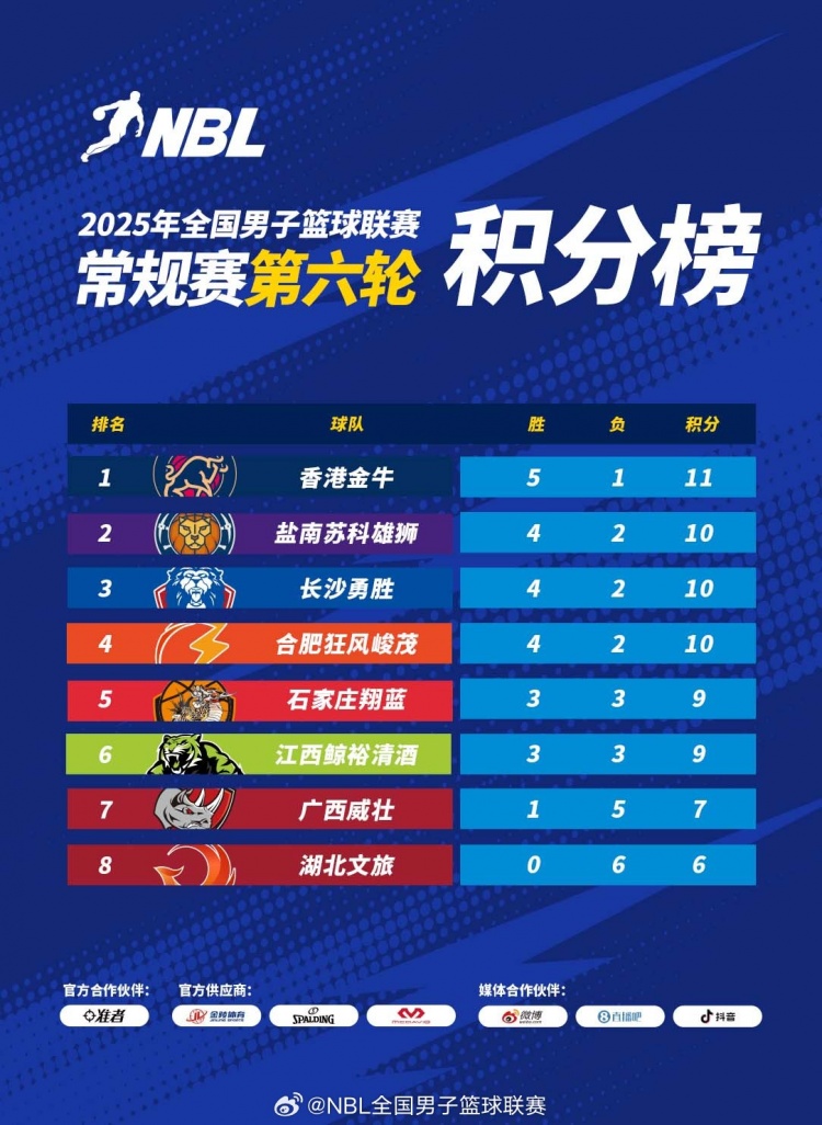 【積分榜】2025年NBL常規賽積分榜(截止至第六輪結束)