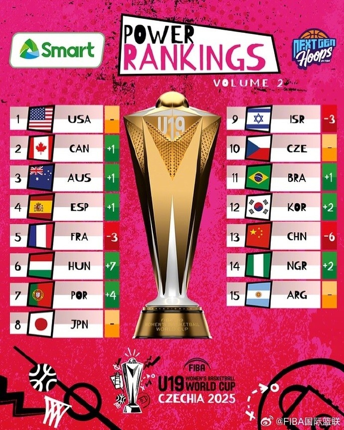 7月18日訊 今天,FIBA公布了女籃U19世界杯第二期實(shí)力榜,中國隊下降6位,排名倒數第3。