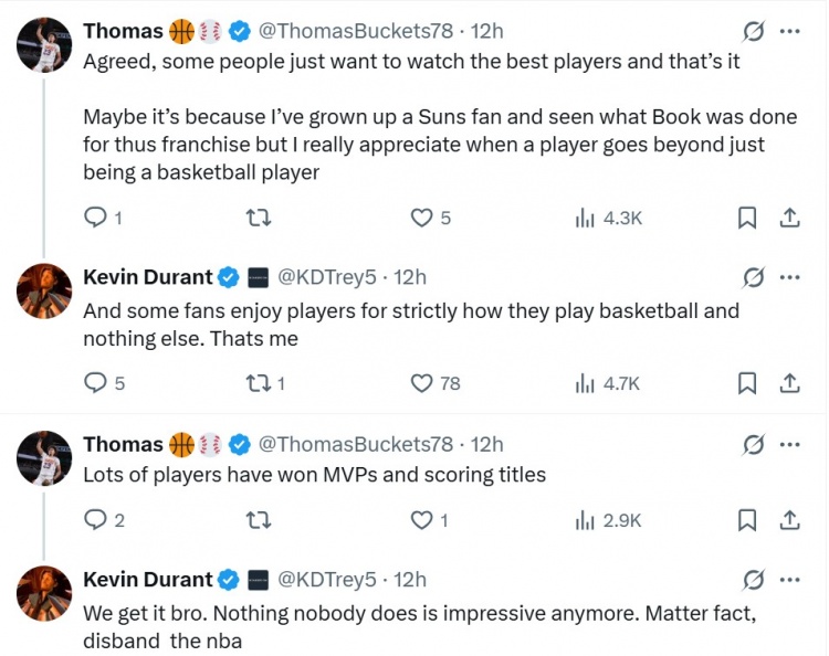 杜蘭特:有些球迷純粹是欣賞球員的球技,而不在乎其他方面。我就是這種(有球技的人)。