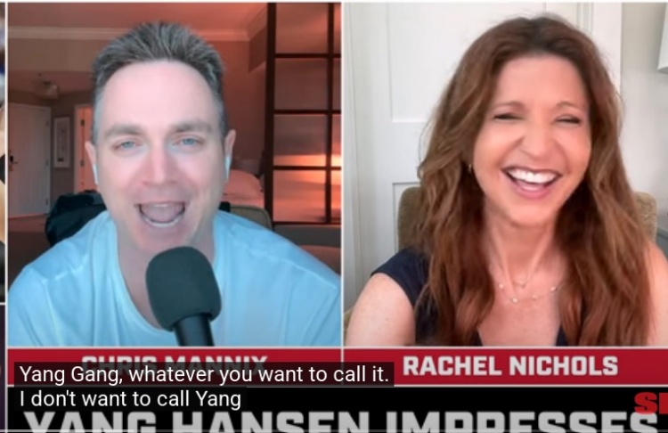 “我們現在要怎么稱(chēng)呼他?楊幫(Yang Gang)?或者楊強壯(Yang Strong)!”Rachel Nichols調侃道。