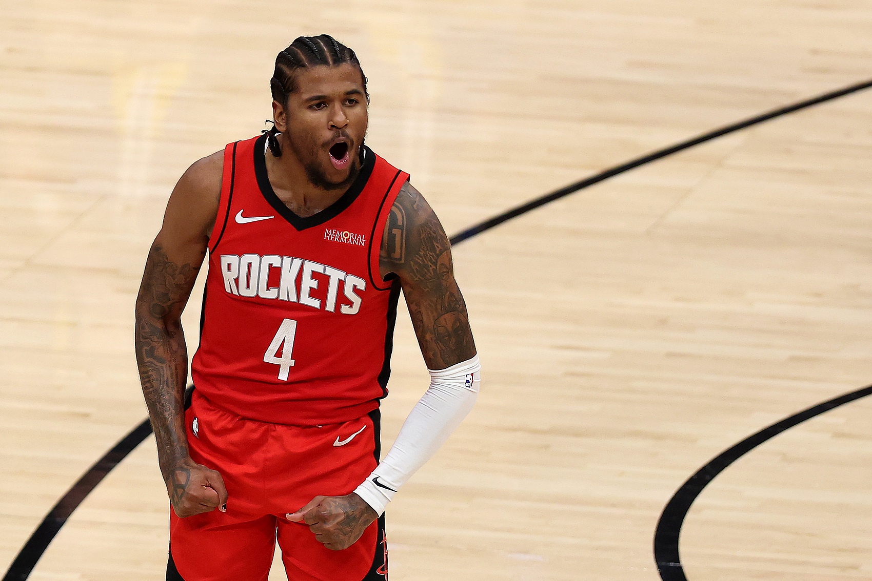 杰倫-格林讓Draya Michele猜自己小時(shí)候的偶像是誰(shuí),Draya Michele猜了歐文和科比,結果都不對,杰倫-格林表示,他小時(shí)候的偶像是喬丹,他會(huì )經(jīng)??磫痰さ母吖饧\。