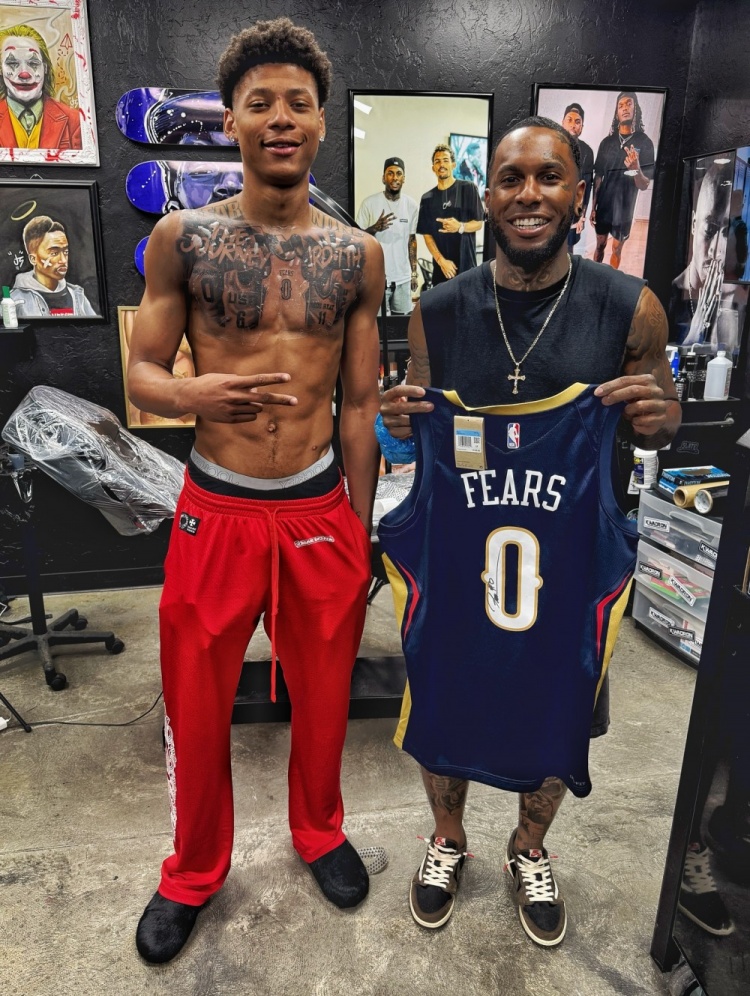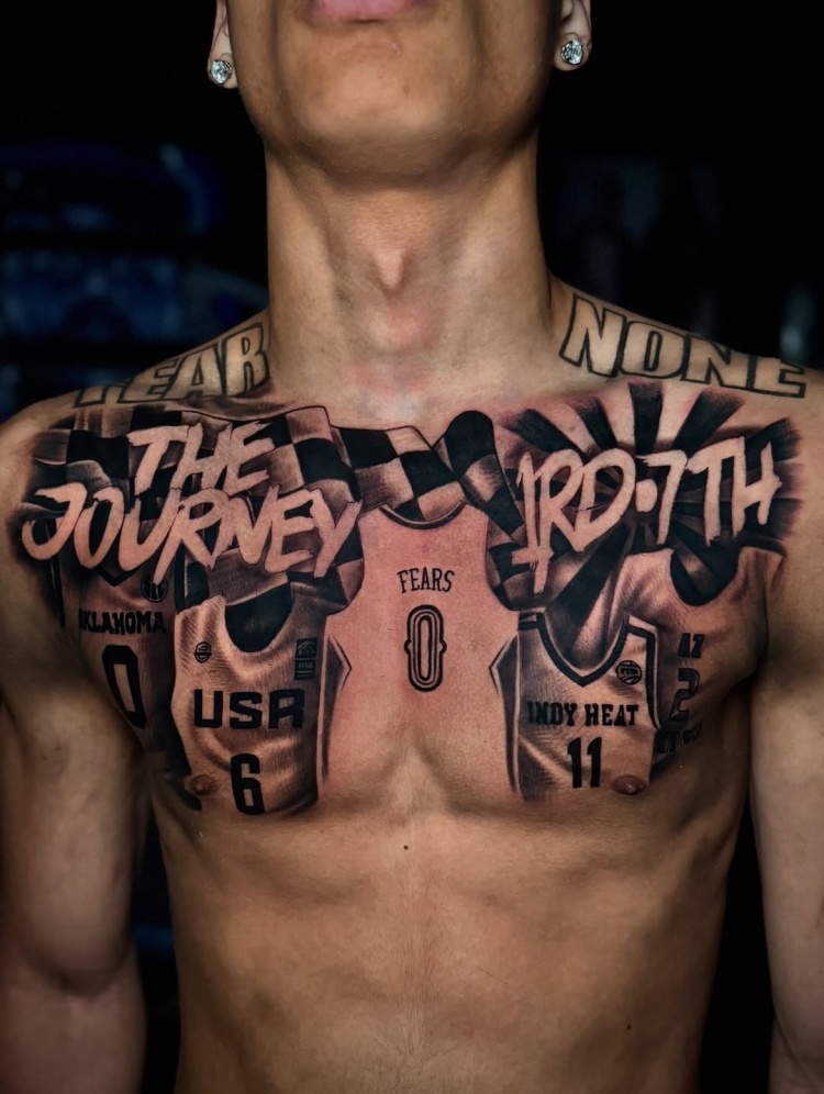他剛剛為費爾斯在胸前加上了一個(gè)紋身作品,圖案是費爾斯生涯的那些球衣,其中包括高中、AAU、美國U系列國家隊、俄克拉荷馬大學(xué)還有鵜鶘的球衣。