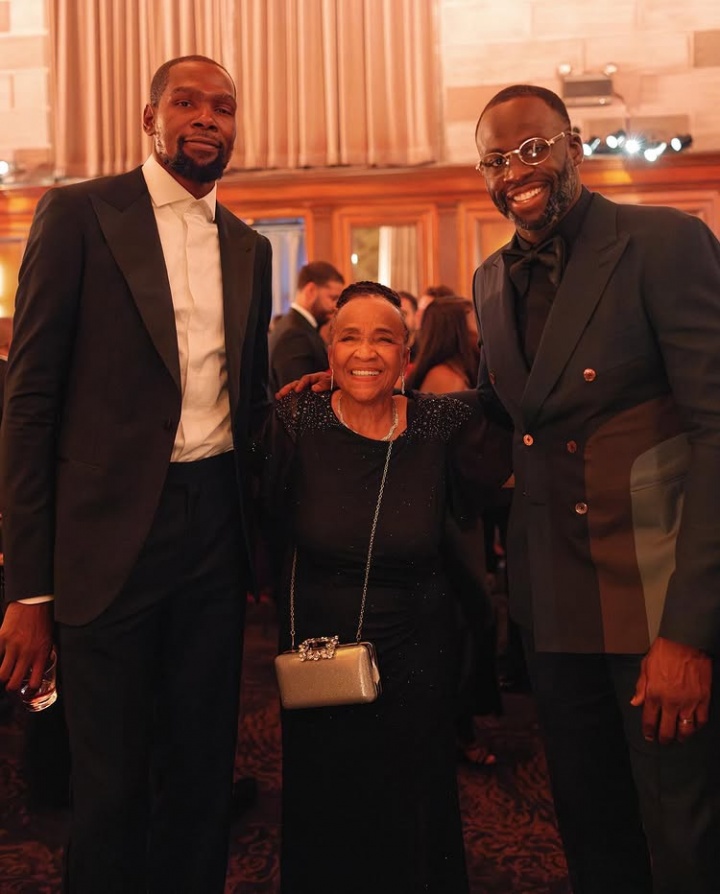哥倆好??杜蘭特追夢(mèng)一同參加美女記者婚禮 倆人微笑合影