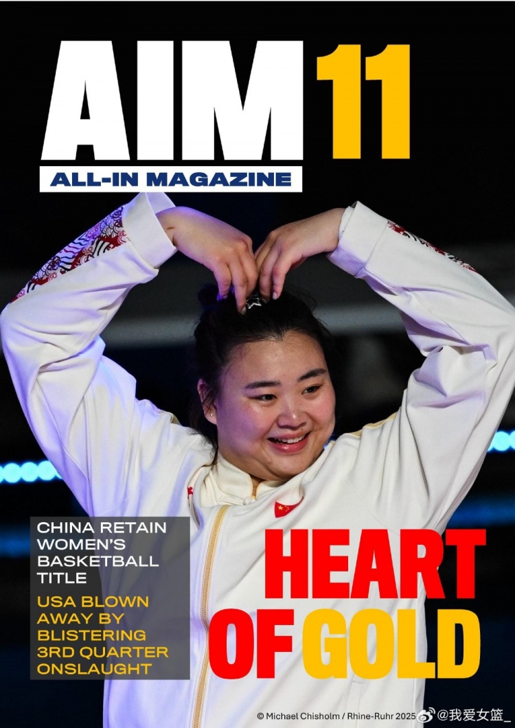 【排面!劉禹彤比心照登上大運會(huì )官方雜志封面】中國大運女籃衛冕大運會(huì )女籃冠軍的消息今天登上了各個(gè)平臺的的熱搜,無(wú)數球迷為之振奮。最新一期的大運會(huì )官方雜志《AIM》也用多個(gè)版面報道本場(chǎng)比賽,其中封面選擇了劉禹彤在頒獎儀式上微笑比心的照片,并配文“冠軍的心”。