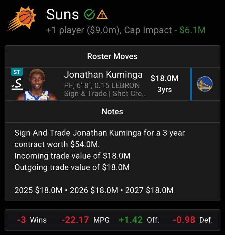勇士3年5400萬(wàn)續約庫明加并送至太陽(yáng)