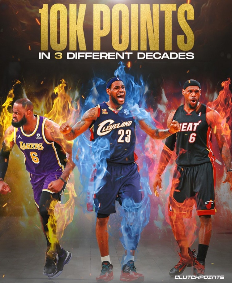 ??美媒:詹姆斯在三個(gè)不同十年得分皆10000+ 前無(wú)古人后無(wú)來(lái)者