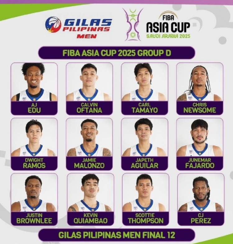 7月31日訊 菲律賓男籃今天公布了亞洲杯12人名單,布朗利領(lǐng)銜。