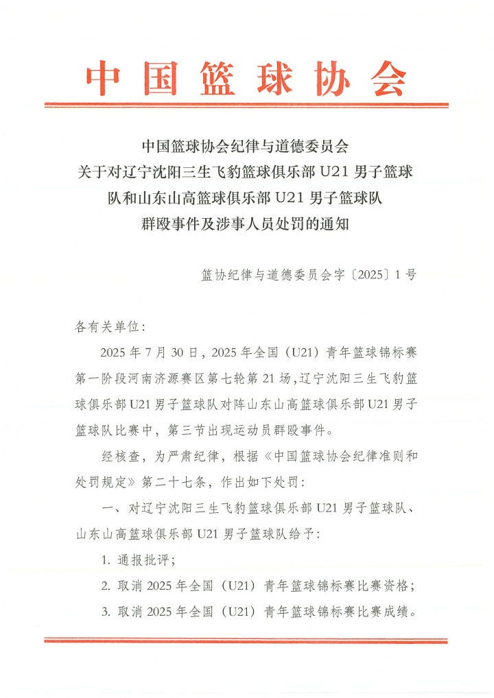 籃協(xié)紀律與道德委員會(huì )字〔2025〕 1號