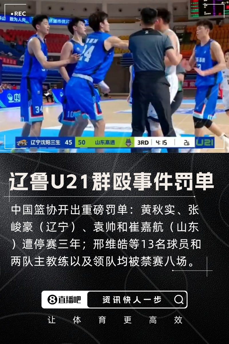 黃秋實(shí)、張峻豪(遼寧)、袁帥和崔嘉航(山東)被通報批評、取消2025年全國(U21)青年籃球錦標賽比賽資格,遭停賽三年;邢維皓等13名球員和兩隊主教練以及領(lǐng)隊被通報批評、取消25年全國(U21)青年籃球錦標賽比賽資格,均被禁賽8場(chǎng)。
