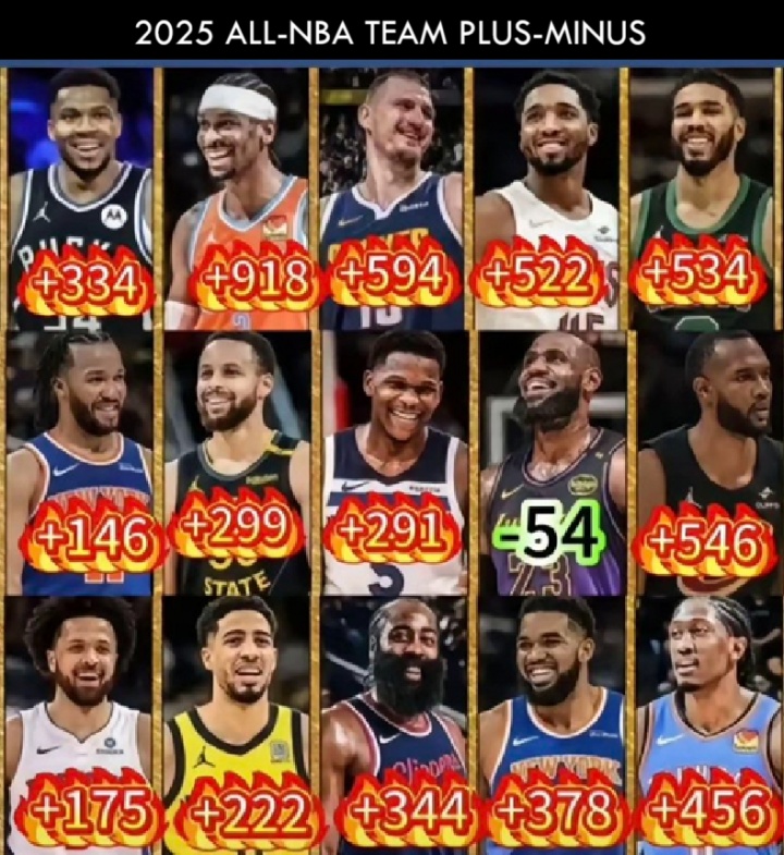 勒布朗-詹姆斯:-54(湖人隊 50勝32負,入選第二陣容,NBA正負值排名第383位)