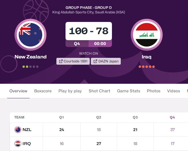 8月5日訊 男籃亞洲杯小組賽,新西蘭100-78擊敗伊拉克。