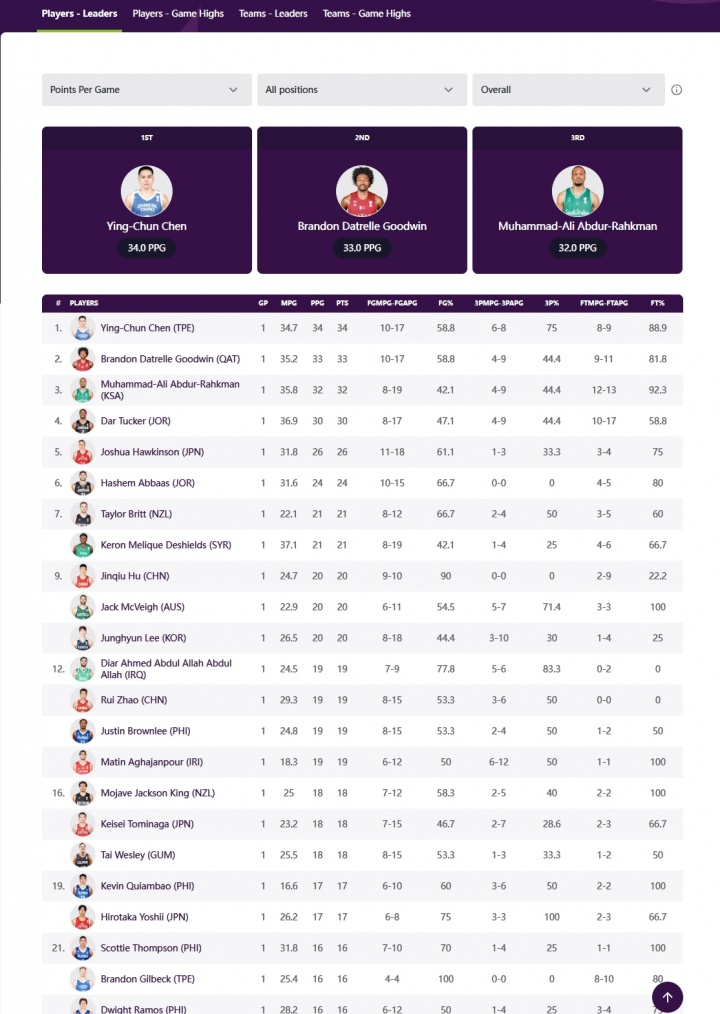 卡塔爾首戰80比84不敵黎巴嫩??ㄋ柲谢@的歸化球員、上海外援古德溫打出精彩表現,出戰35分鐘09秒,17投10中,三分9投4中,罰球11罰9中,砍下33分5籃板7助攻2搶斷,不過(guò)也有6次失誤。