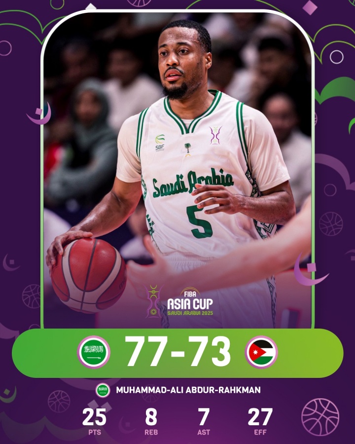 沙特歸化球員拉赫曼出戰37分21秒,20投8中,三分11中3,罰球7中6,得到25分8籃板7助攻2搶斷,沙特2米08中鋒阿爾蘇韋萊姆出戰30分17秒,11投5中,罰球4中4,砍下14分15籃板1助攻6蓋帽。