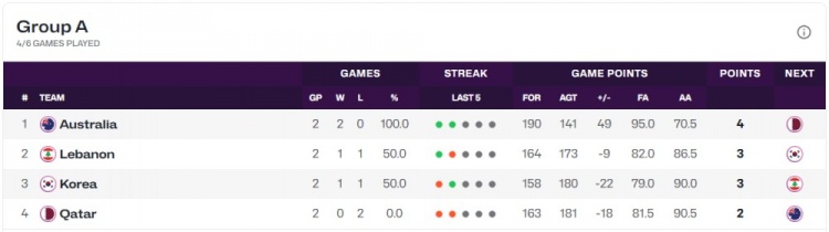 韓國男籃目前1勝1負,排名小組第3,小組賽最后一場(chǎng)他們將和黎巴嫩男籃正面對決。