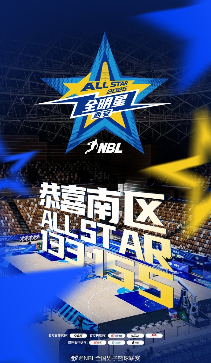 nbl全明星全場(chǎng)比賽結束!北區明星隊133:155南區明星隊。
