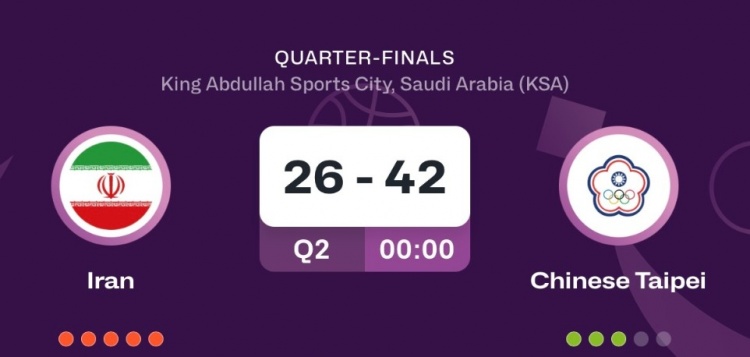 8月14日訊 男籃亞洲杯1/4決賽,中國臺北半場(chǎng)42-26領(lǐng)先伊朗。