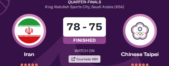 伊朗末節打出26-11,完成21分大逆轉,晉級四強,下一場(chǎng)他們將對陣澳大利亞。