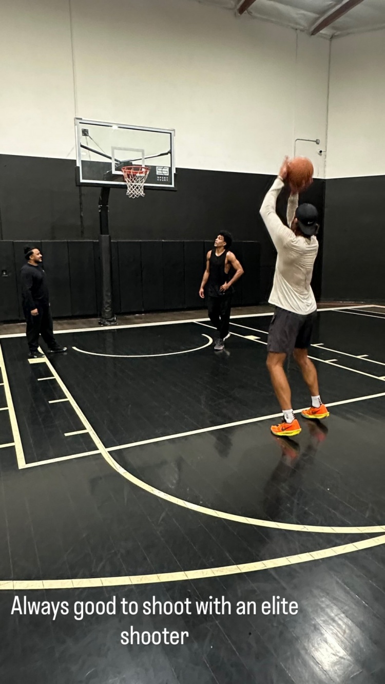 “與一位神射手一起練投籃總是很棒?!蔽纳貙?xiě)道。